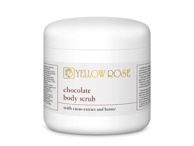 Mitrinošs gēlveida skrubis Yellow Rose Chocolate Body Scrub ar mikrogranulām, kakao ekstraktu un sviestu. Palīdz noņemt atmirušās ādas šūnas un padara ādu maigu un gludu. Sagatavo ādu ķermeņa slaidināšanas un nostiprināšanas procedūrai, aktīvo sastāvdaļu uzņemšanai. Satur kakao sviestu no kakao sēklām, un to jau gadsimtiem ilgi izmanto, lai uzturētu ādu mīkstu un elastīgu. Tas ir viens no stabilākajiem un viskoncentrētākajiem zināmajiem dabiskajiem taukiem. Kakao sviests palīdz saglabāt mitruma līmeni epidermā, vienlaikus veidojot dabisku barjeru starp jutīgu ādu un apkārtējo vidi. Greipfrūtu dabīgā ēteriskā eļļa veicina limfas sistēmas darbību un cīnās pret celulītu. Tilpums: 500ml