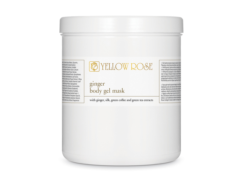Tonizējoša, pretcelulīta un nostiprinoša ķermeņa gēla maska Yellow Rose Ginger Body Gel Mask ar ingvera ekstraktu, zaļās kafijas pupiņu ekstraktu, zīda proteīniem un hialuronskābi. Tilpums: 1000ml