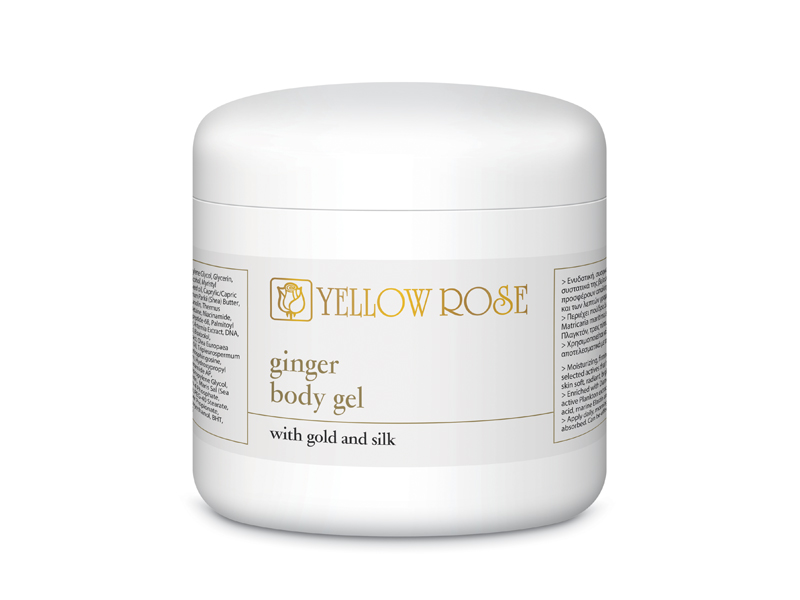 Pretcelulīta gēls Yellow Rose Ginger Body Gel ar 23-karātu zeltu, zīda proteīniem, lipolītiskām, nostiprinošām un mitrinošām sastāvdaļām intensīvai ķermeņa kopšanai. Nostiprina, tonizē, uzlabo ādas elastību un palīdz samazināt celulītu. Atstāj ādu zīdaini gludu, atjaunotu, starojošu un tonizētu. Var efektīvi kombinēt ar citiem Yellow Rose Ginger Body līnijas produktiem. Tilpums 500ml