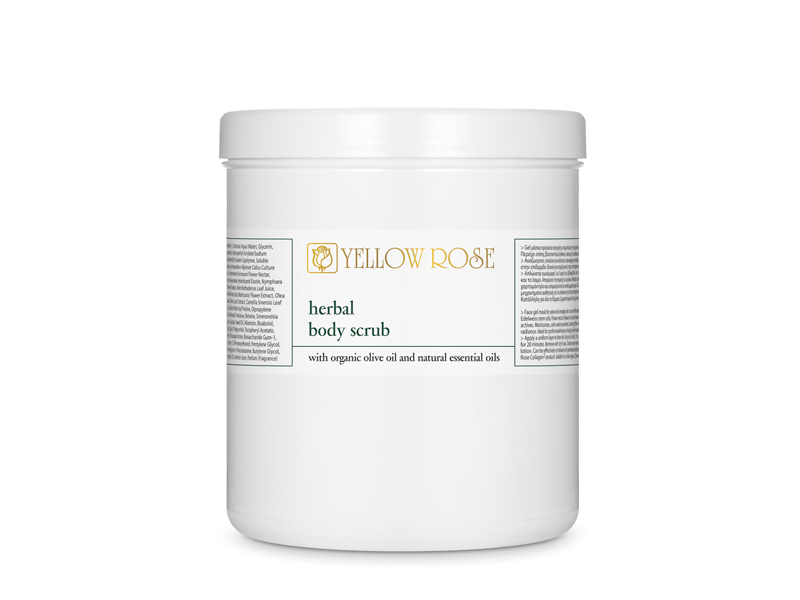 Gēlveida skrubis ķermenim Yellow Rose Herbal Body Scrub ar cukura kristāliem, augu ekstraktiem un dabīgām ēteriskajām eļļām (98% dabīgas izcelsmes). Attīra ādu un padara to maigu un gludu, noņemot atmirušās šūnas. Tilpums: 1000ml